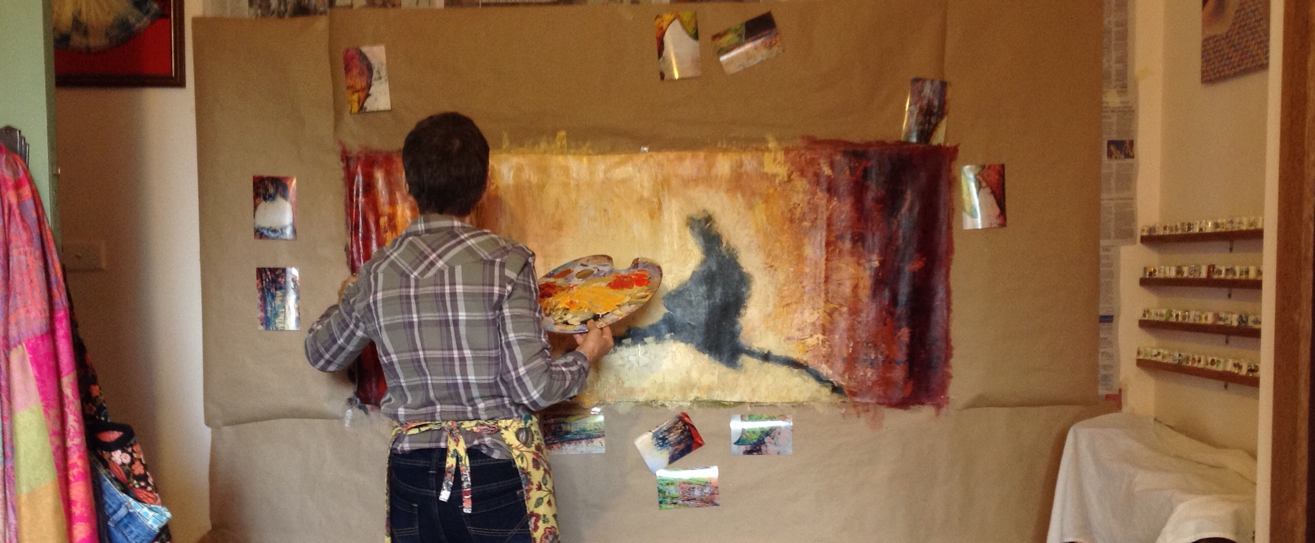 The question is do we abandon the birds and work up the painting? No I really want this to be a mixed media piece that incorporates the fabric elements that Rob works with. It is a question of rethinking.