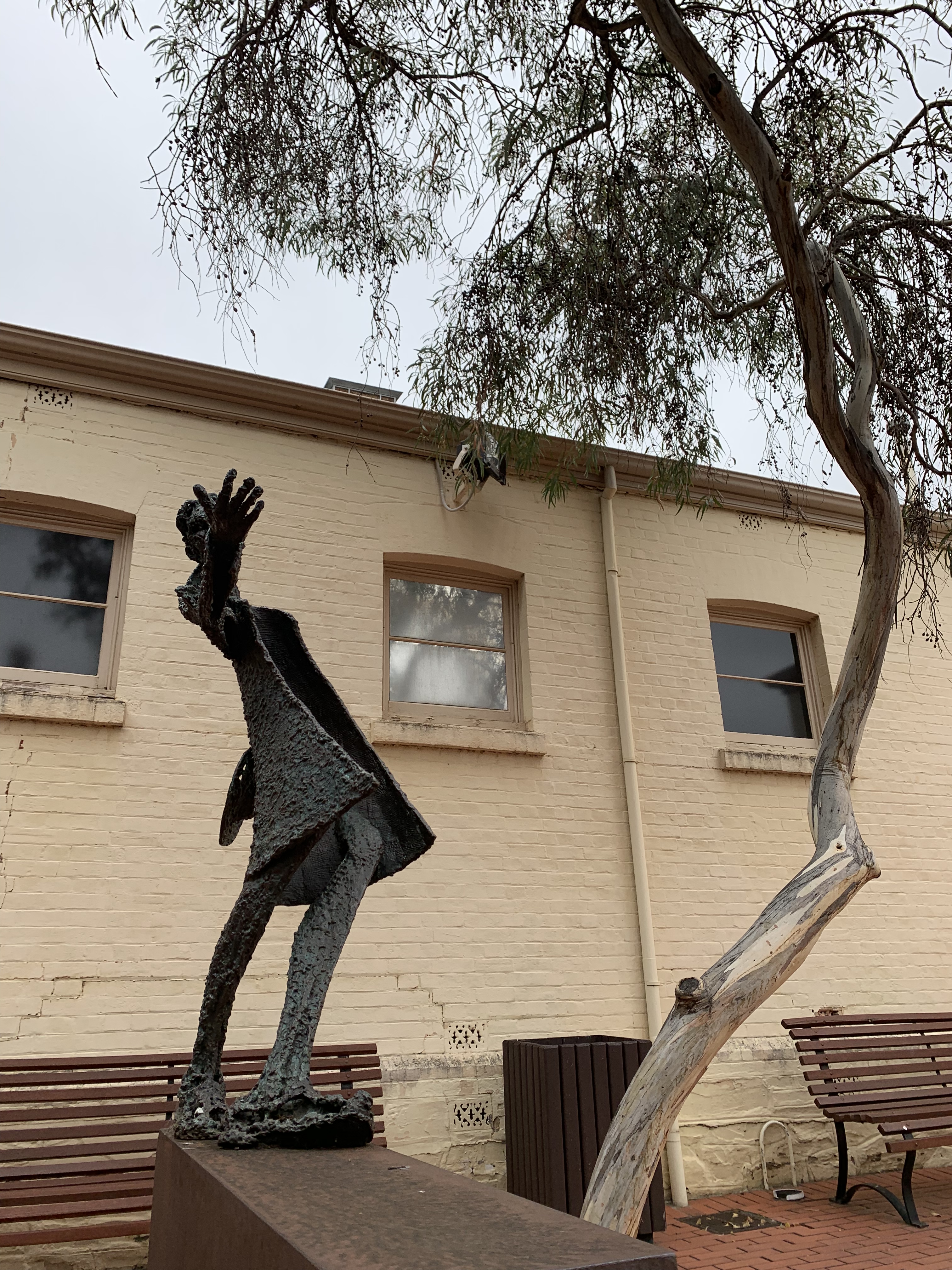 She occupies a corner of a courtyard at the Migration Museum in Adelaide, It is not a not particularly appealing space, yet I found myself moving closer, drawn to this skinny elongated form.