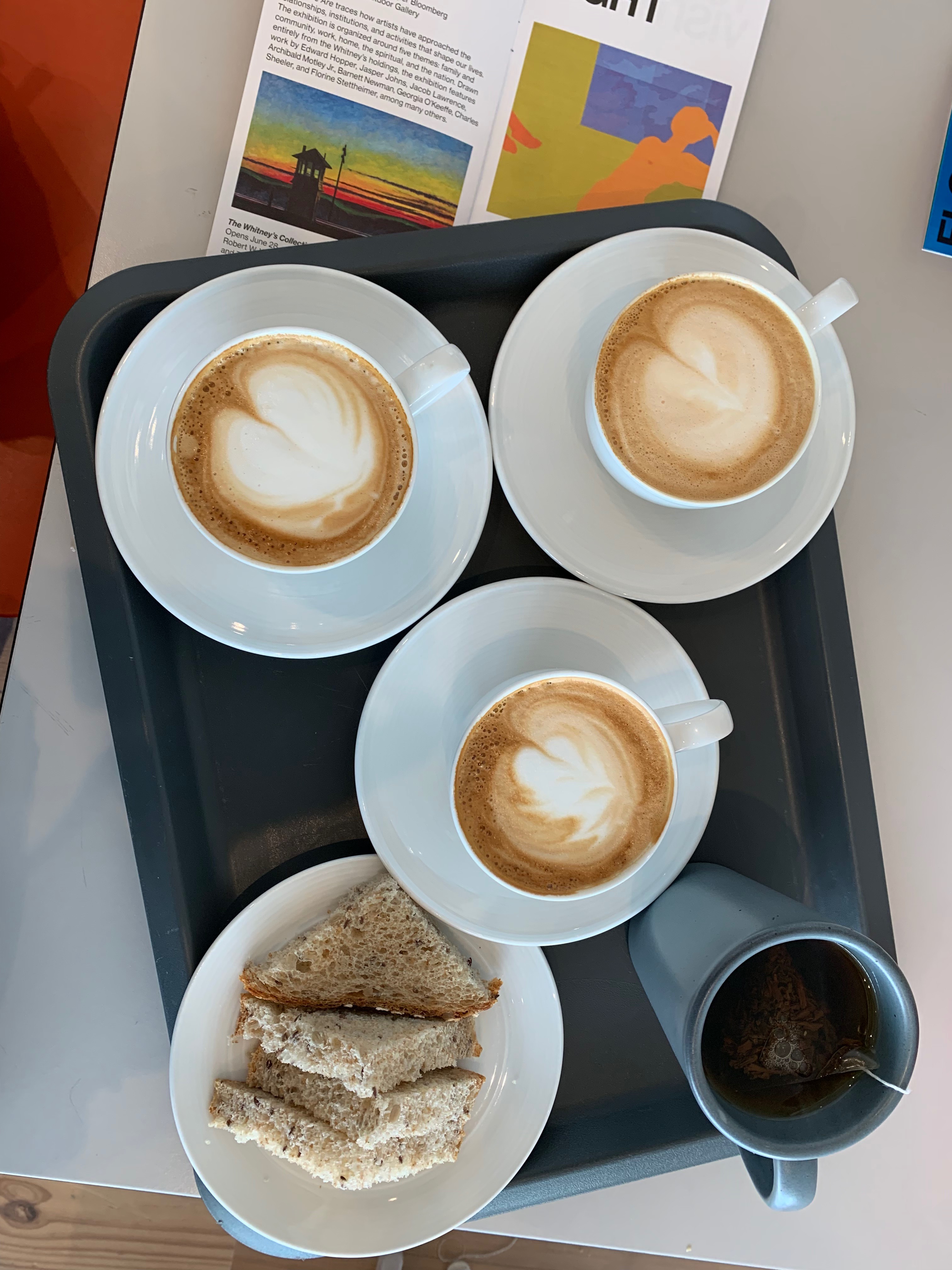 Coffee and tea at the Whitney Museum. Thank you to the friendly accomodating cafe staff and the Museum for having china coffee cups instead of throwaways.