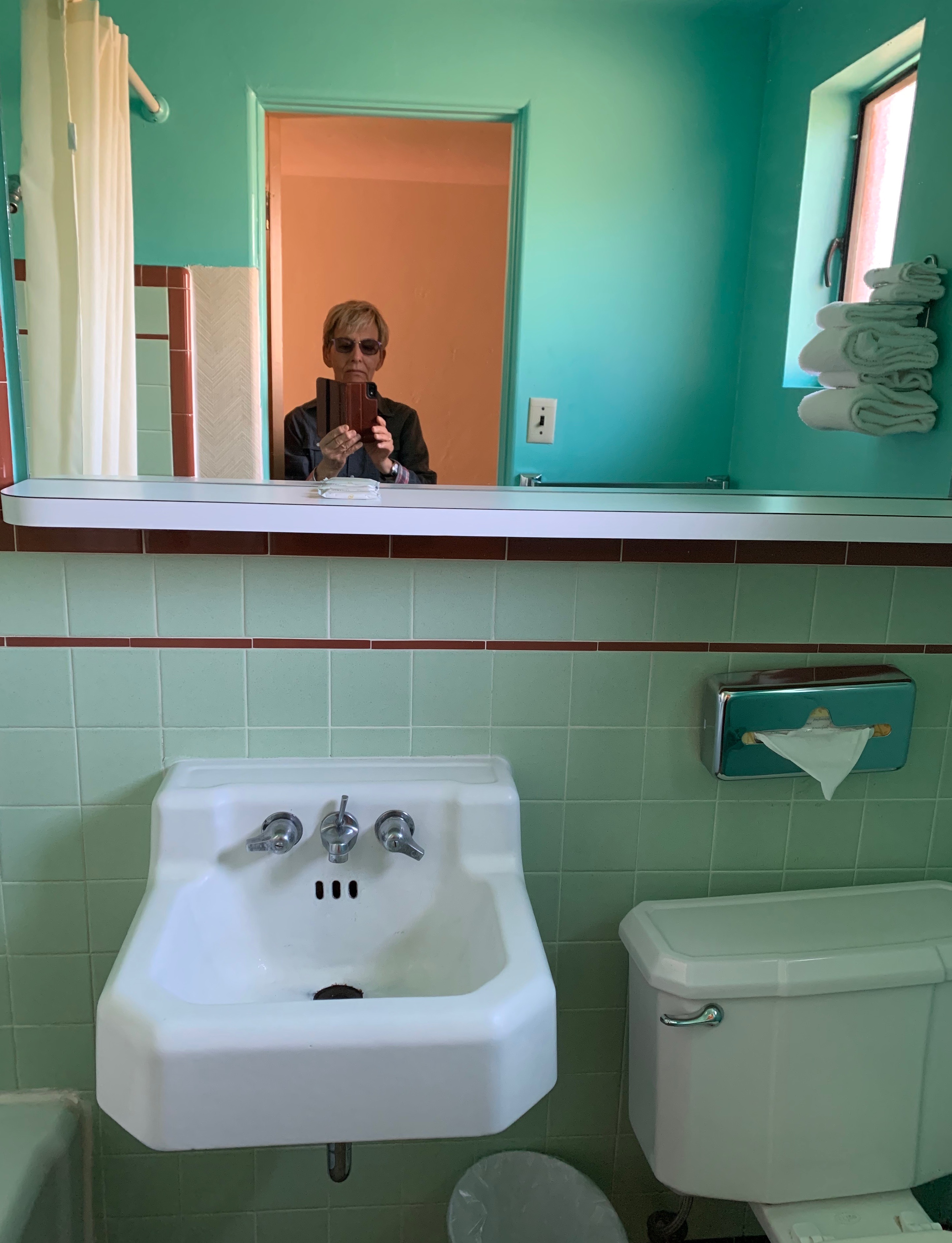 I love motel rooms that have original bathroom features. These days hotels and motels have fixtures that will fall apart in less than a decade. The Aneth Lodge in Cortez Colarado has a bath, sink and toilet built to last.