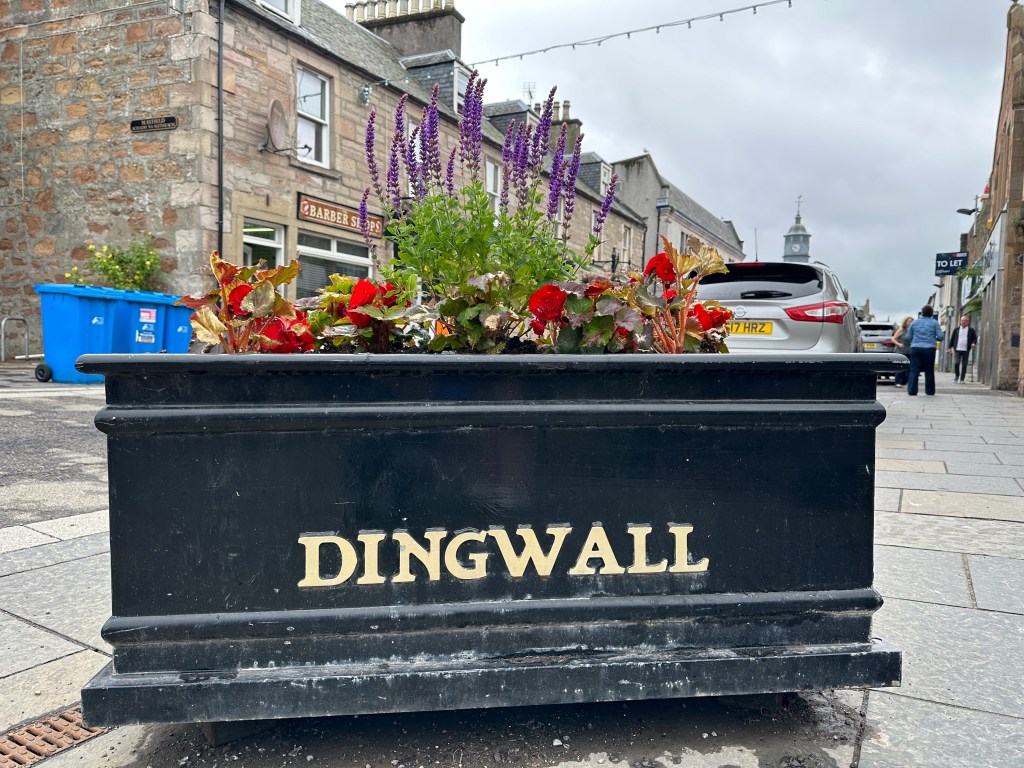 Ali had driven us past Tulloch Castle last time we visited so this time we walked through the heart of Dingwall searching for a postcard for Vanessa, Col’s sister.