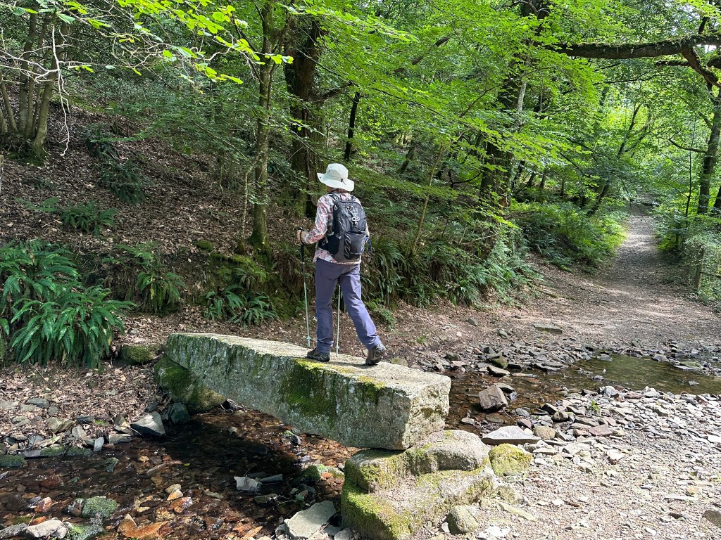 My colour coordination is a pure fluke. The hiking pants and shirt were on sale at REI in the USA. Bought in 2018, they are still pristine because the Dartmoor Way is my first walking adventure since Covid. As for the walking poles, they were the only fold up pair in the outdoor gear store in Edinburgh that were the right length for me.