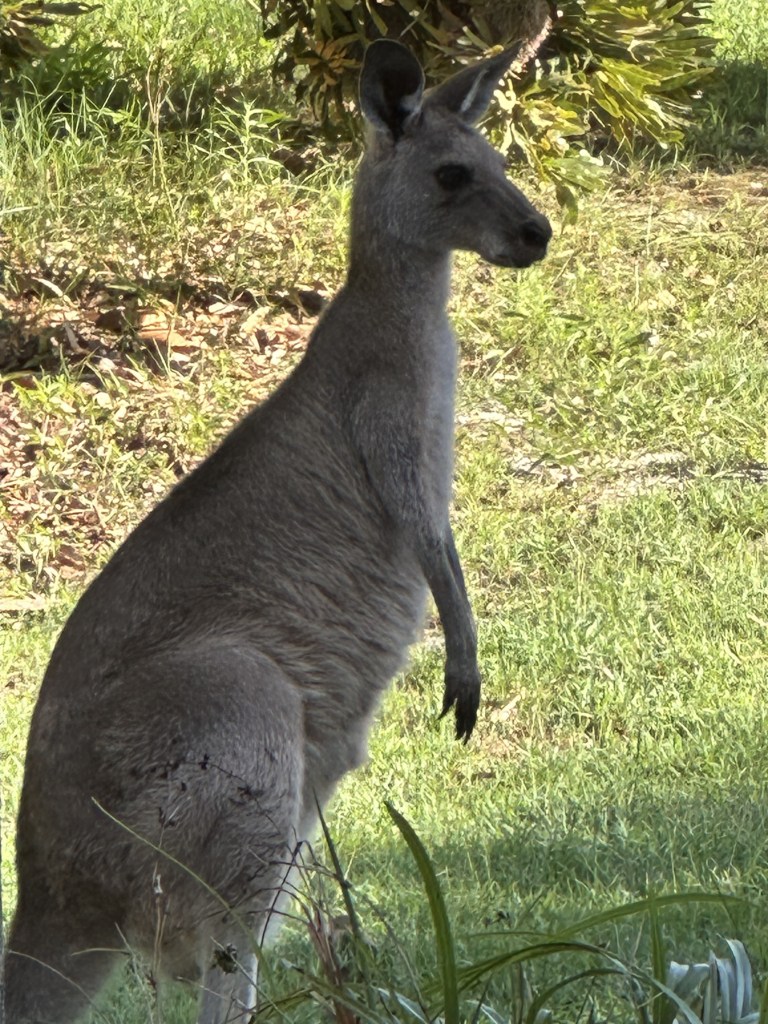 One night I walked out onto the veranda. A massive male Eastern Grey stood tall, directly in front of me, less than five metres away. We both froze in surprise, then I gently turned and quietly went inside, to let him be.