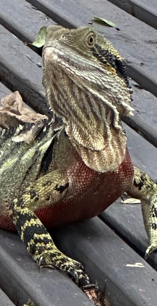 This magnificent adult male Australian Water Dragon lives in the grounds of Queensland Art Gallery. His colour, texture, and folded forms resonate with my artistic aesthetic.
