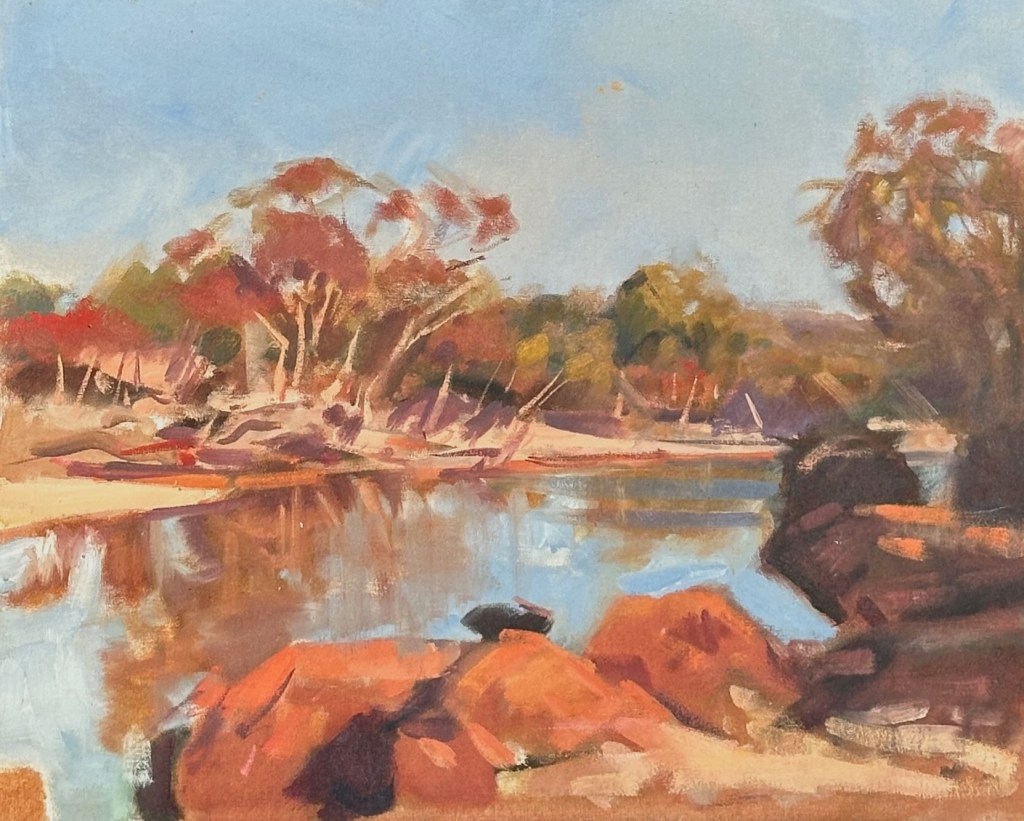 I painted these little 16×20 inch oil paintings on canvas boards around 2005-6. They bring back memories of a small group of enthusiastic students working together in the garage studio of Melbourne artist Peter Smales.