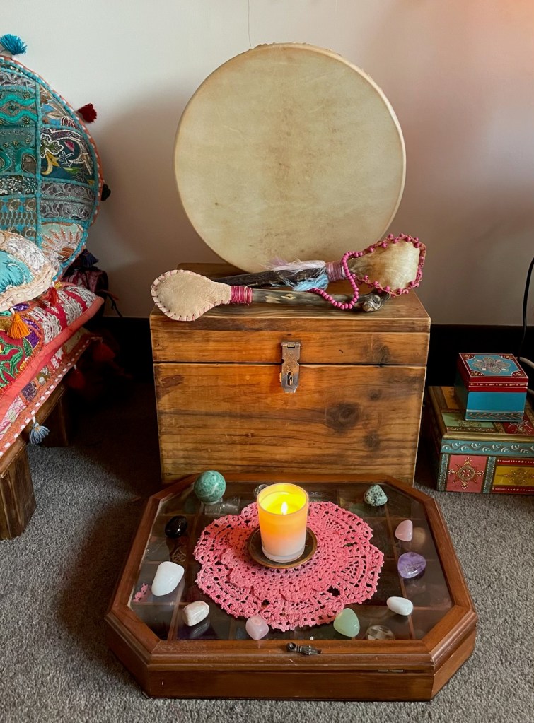 Her room, adorned with fabric creations and curated arrangements, had a warm inviting feminine feel – BoHo in interior design terms. It was an expression of her creativity.