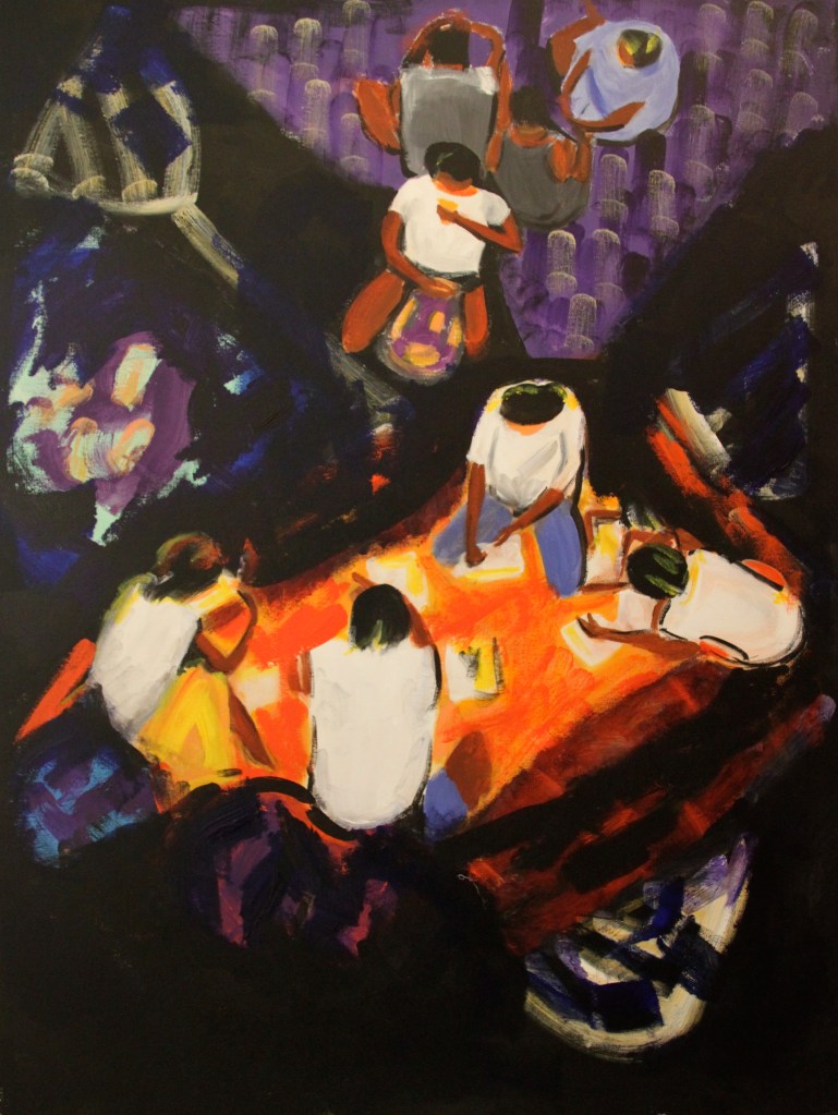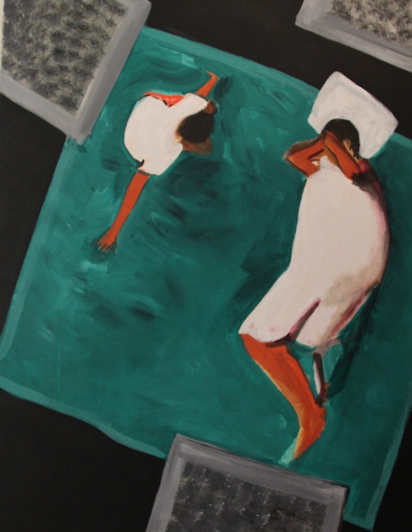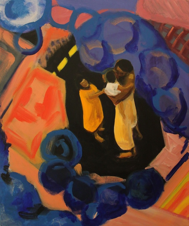 They were living their lives in this place. Eating, playing, trying to sleep, despairing, all of them thrown together and dislocated as a result of a natural disaster. This is what I chose to paint.
