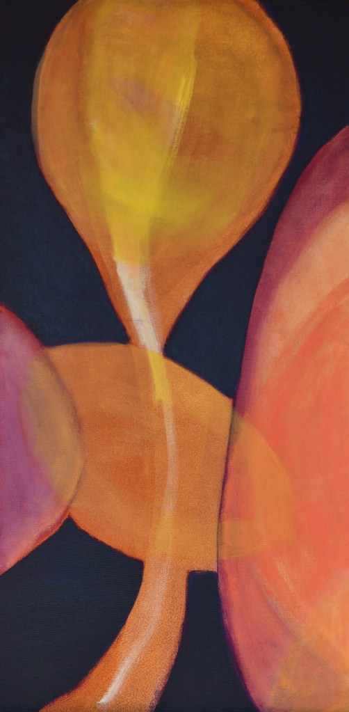 This method fascinates me. I let go of any preconceived ideas, then wait. Eventually as I push paint around something emerges from the painting itself. This is always a big experiment with an unknowable outcome. Some meaningful set of objects becomes ‘no’ thing (an abstract work) or they re-configure as a new set of objects (a figurative work). Always there is the tension and play as something transforms into nothing and vice versa.